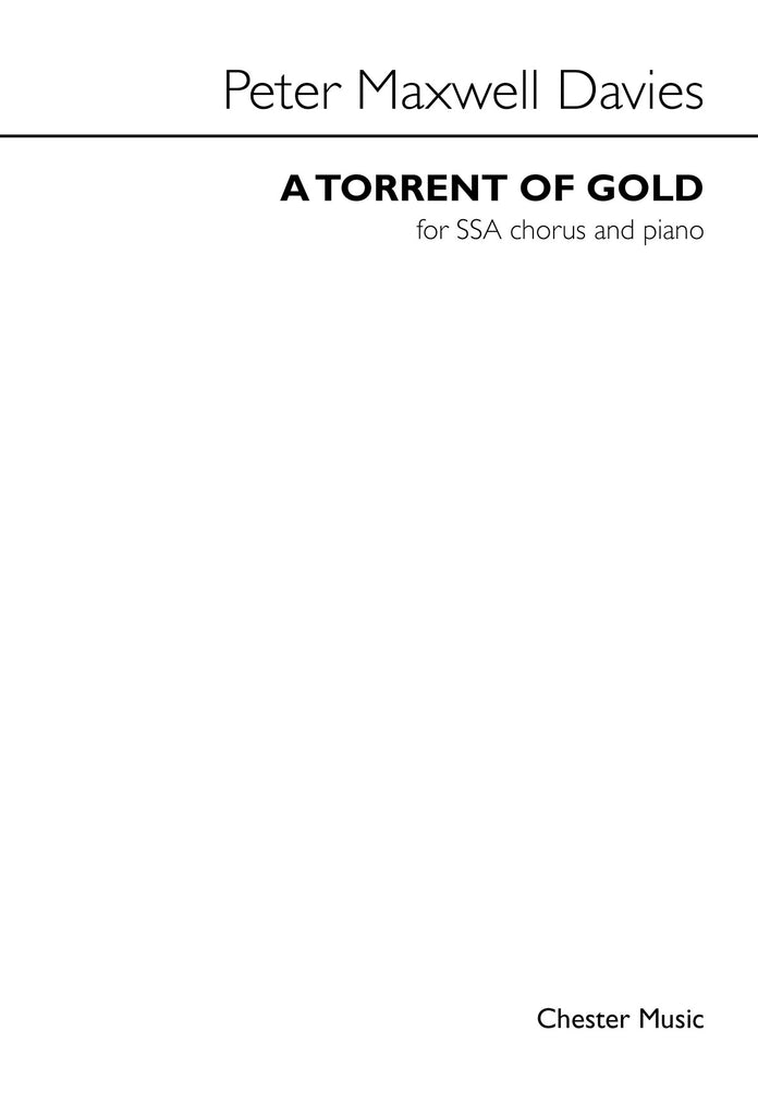 A Torrent Of Gold is a work for SSA Chorus and Piano Accompaniment by Peter Maxwell Davies. Commissioned by Hurstpierpoint College, the first performance was on 15th January 2016. A setting of a poem by George Mackay Brown, a full performance lasts around 2 minutes.