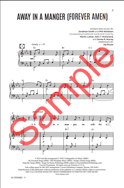 This tender, multi-generational setting of Phil Wickham’s rendition of "Away in a Manger" is a wonderful opportunity to incorporate a children’s choir into your Christmas worship services. The children's choir is beautifully supported by the adult choir in this simple, accessible, and easy-to-learn arrangement.