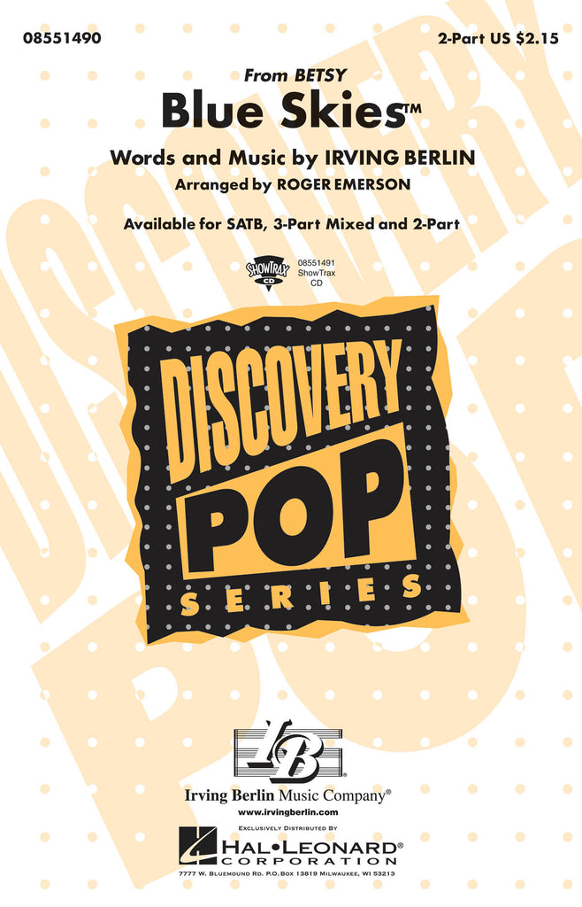 Now available separately: younger voices, this Irving Berlin tune is a classic of jazz swing style. This long-time favorite will bring a smile to your face and put a spring in your step! Available: SATB, 2-Part, 3-Part Mixed, ShowTrax CD. Performance Time: Approx. 2:30.