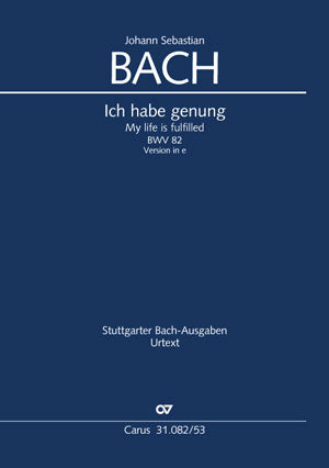 Setting in E minor. A new edition of the version for solo soprano by Bach, which can hold a place alongside the version for bass solo. Bach originally composed the cantata for the Feast of Purification for a solo bass in the key of C minor (CV 31.82/). Since its scoring for only one solo voice made it easily adaptable for performances under different conditions, in the course of its compositional history it underwent many changes. The present version in E minor for solo soprano, which has been reconstructed, in part, by Ulrich Leisinger, enjoyed a great popularity among Bach’s family circle, as can be seen by copies of movements 2 and 3 in Anna Magdalena’s “zweites Notenbüchlein.” Both movements – certainly sung by her – are included in the appendix of this edition.