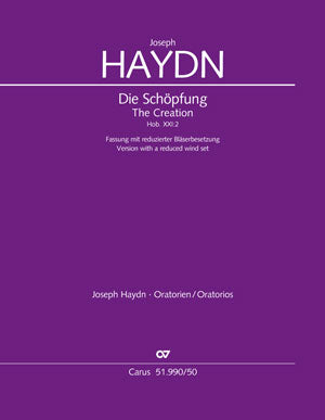 With this arrangement it is possible to present the work in a performance space of limited size. Haydn’s original orchestration is filled with vivid tone painting and this reduced version represents Haydn’s score using accurate colors for the obligato melodies and appropriate instrumental voices for the colla parte passages. It follows the format and content of the critical edition by Carus (ed. W. Gersthofer) and may be used together with the other materials from Carus 51.99 (choral and vocal scores, string parts). Modern performances of "Creation" use sometimes 5–6 players. It is hoped that the present reduction will make this beautiful work available to smaller groups, smaller performance venues, and groups with smaller budgets.