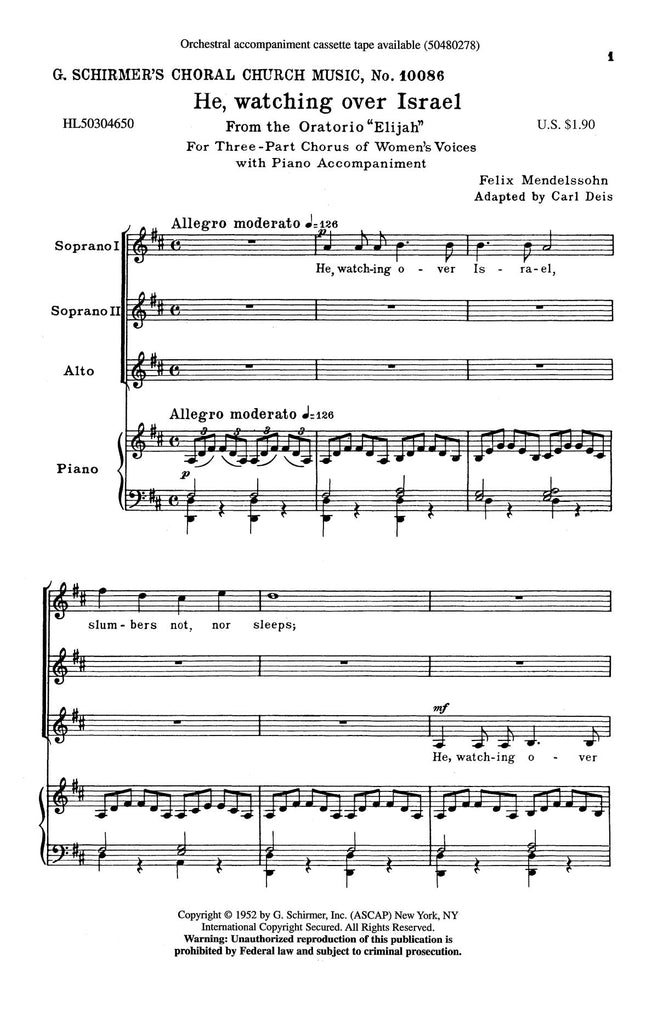 He, Watching Over Israel (from Elijah)
