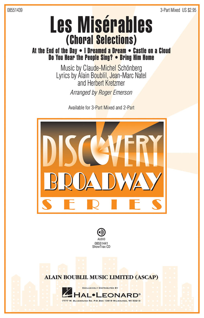 For the first time young choirs can perform the music from Les Misérables in this moving and dramatic 7-minute medley. Includes: At the End of the Day, Bring Him Home, Castle on a Cloud, Do You Hear the People Sing? and I Dreamed a Dream.