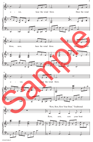 Ruth Elaine Schram masterfully blends three beloved melodies—"Down in the Valley," "Row, Row, Row Your Boat," and "How Lovely is the Evening"—into a delightful and harmonious medley. With her signature creativity, Schram weaves these familiar tunes into a seamless and engaging piece that invites singers and listeners alike to enjoy the beauty of folk traditions. The arrangement is both accessible and captivating, making it a perfect addition to any choir's repertoire, offering moments of playful interaction and serene reflection.