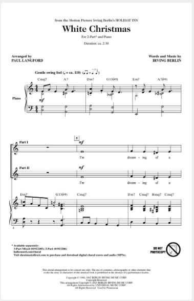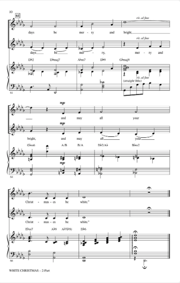 Considered one of the greatest Christmas songs of all time, “White Christmas” can be heard in commercials, movies, TV shows, and public spaces around the world. This charming arrangement incorporates easy vocal parts, fresh harmonies, and a gentle swing feel that gives the piece a jazz-like quality that's fun to sing!
